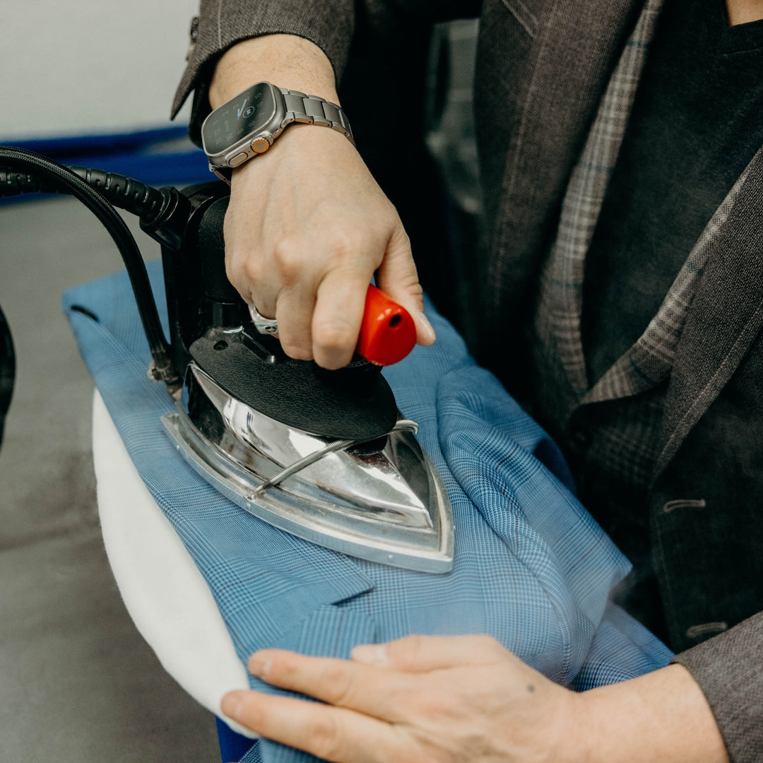 Your garment is made with some of the best wool in the world, and will most likely remove wrinkles by simply hanging in your closet; but in the rare instances where it needs to be professionally pressed, it's best to use the wording "Press Only" with your local Dry Cleaner.